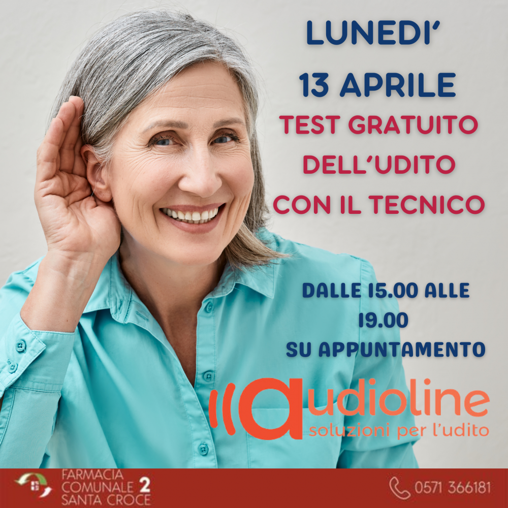 Test gratuito dell'udito con il tecnico di AUDIOLINE dalle 15.00 alle 19.00 . Prenota il tuo appuntamento!